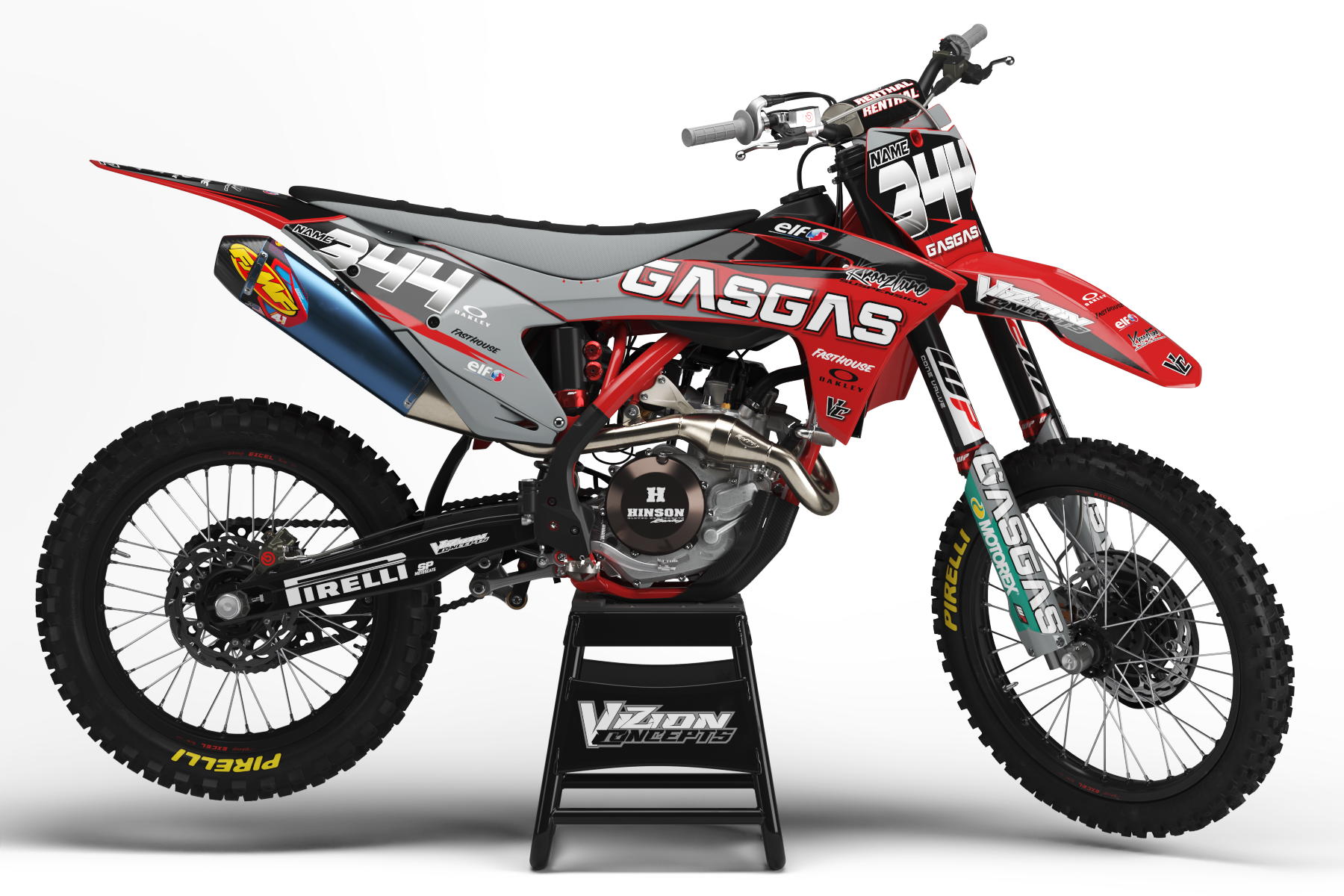 • Factory GasGas logos reimagined with sharper, race-inspired angles.