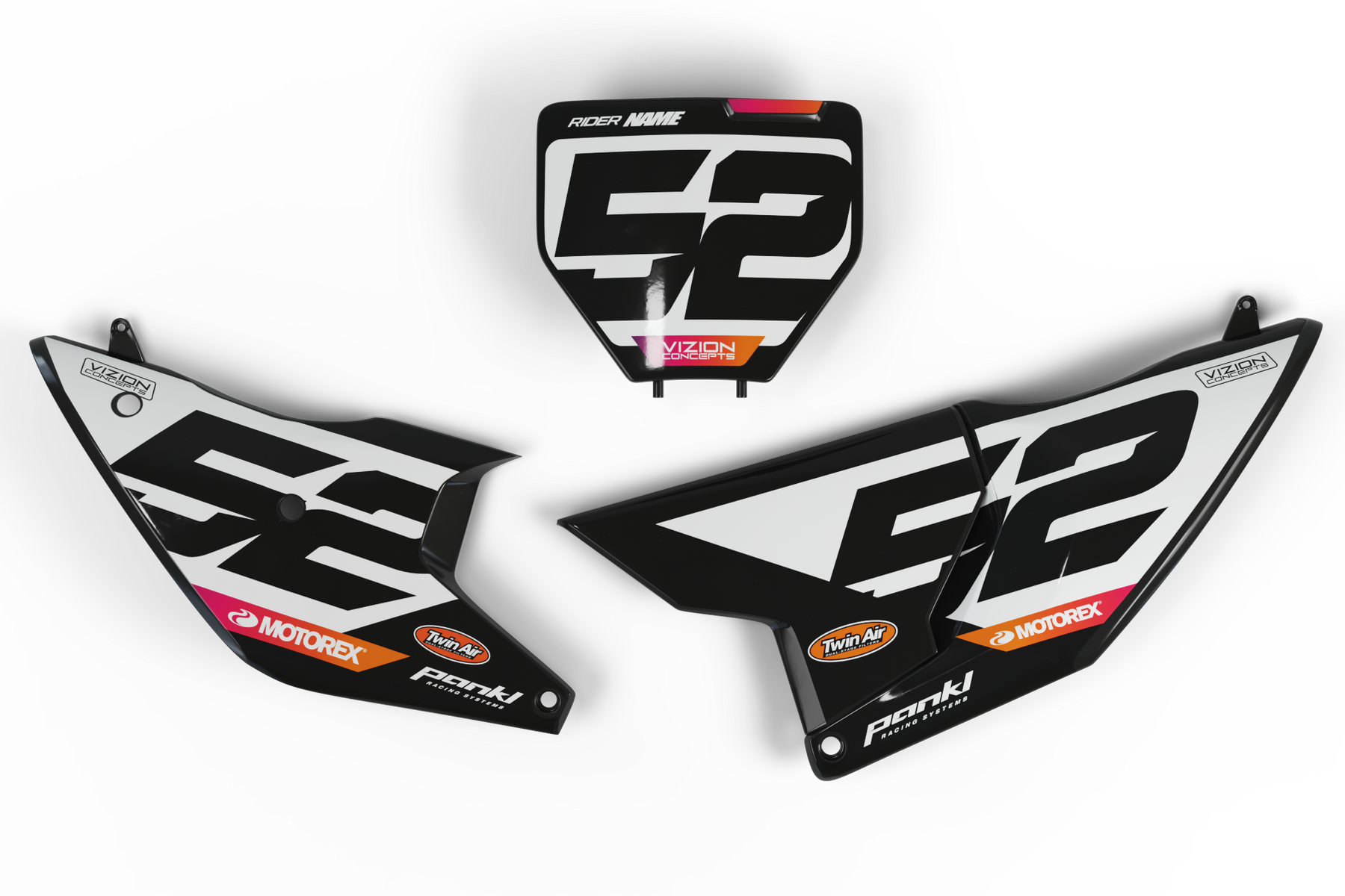 Turn heads with the Electric Pre-Designed Number Plates, built for Husqvarna riders who want a clean factory look with a modern pop of colour. Featuring bold white numbers on black backgrounds, accented with gradient electric streaks, this set delivers that race-ready style straight out of the box.