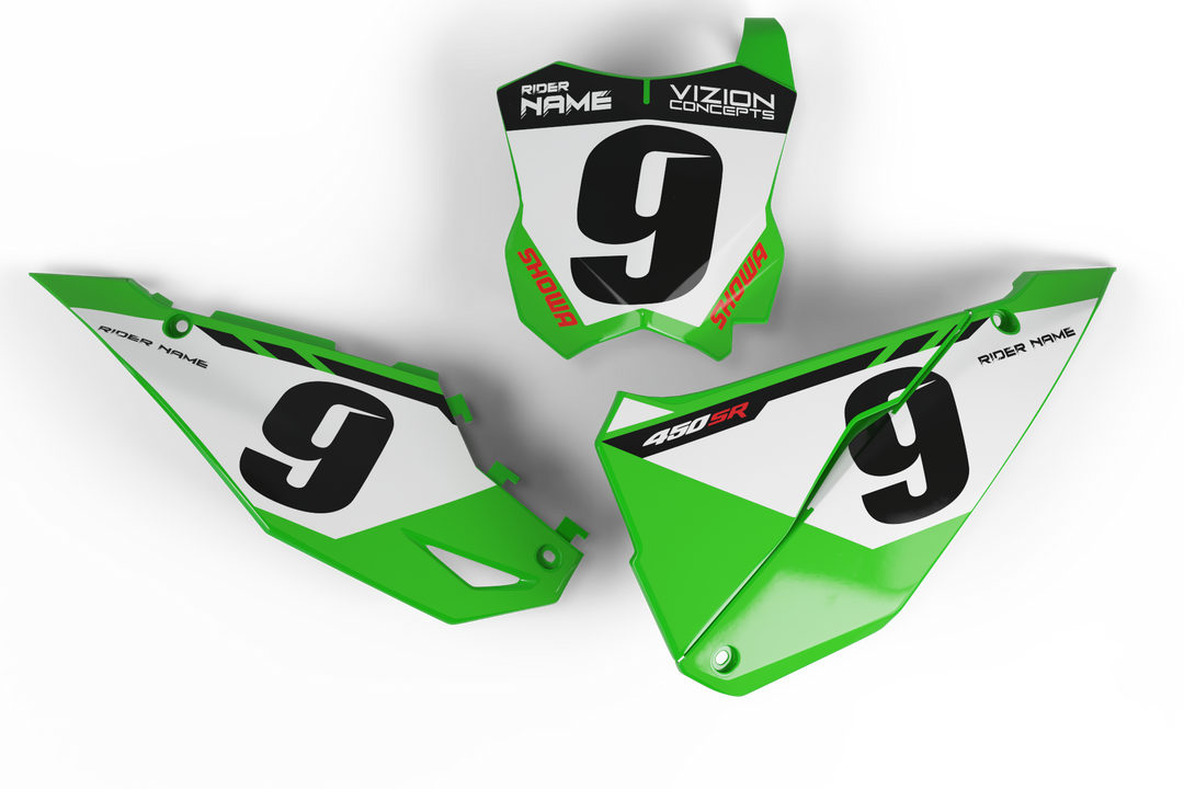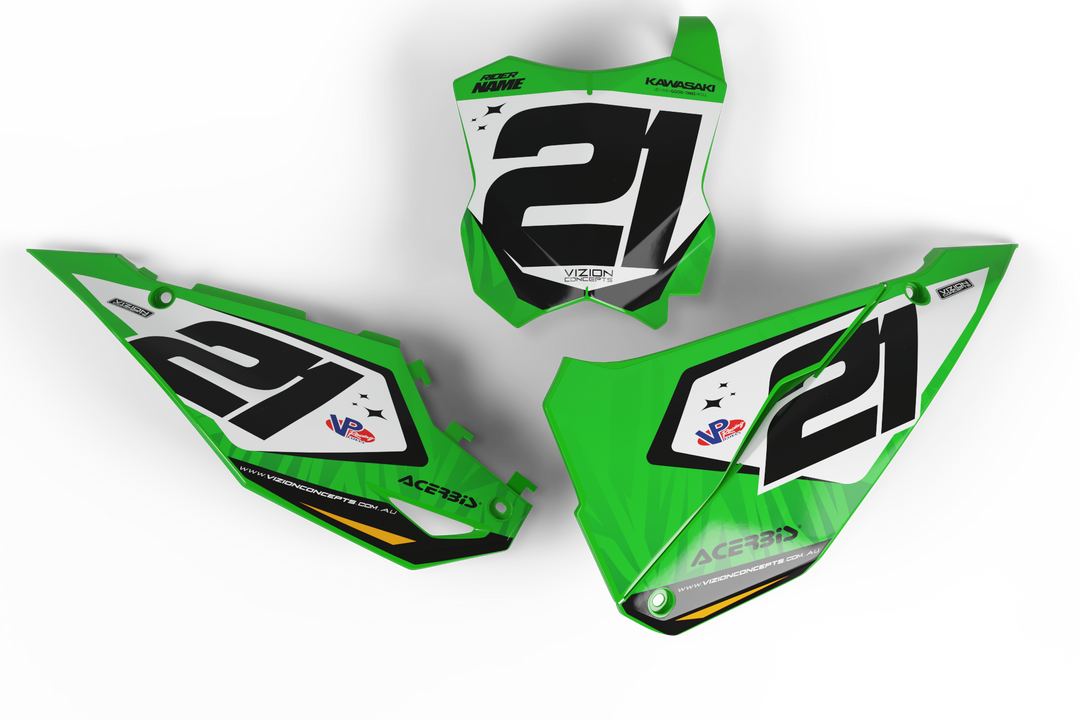 Each set is printed on premium motocross vinyl with gloss laminate, making them UV-protected, roost-proof, and scratch-resistant. Built to withstand the demands of racing and training, our Kawasaki plates keep your bike looking fresh, clean, and race-ready.