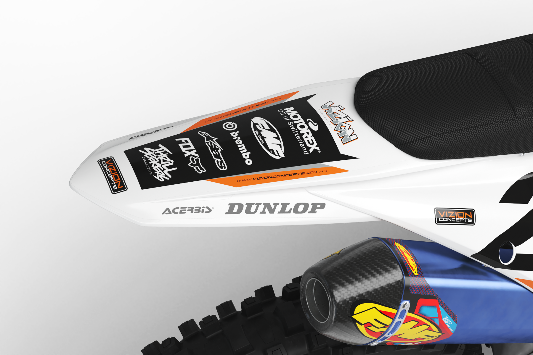 The Nexus kit is built for riders who want that sharp, professional factory look with a touch of aggression. The clean white panels flow into KTM orange with bold linear streaks cutting across, giving the bike a fast, forward-driven style straight out of the gate.