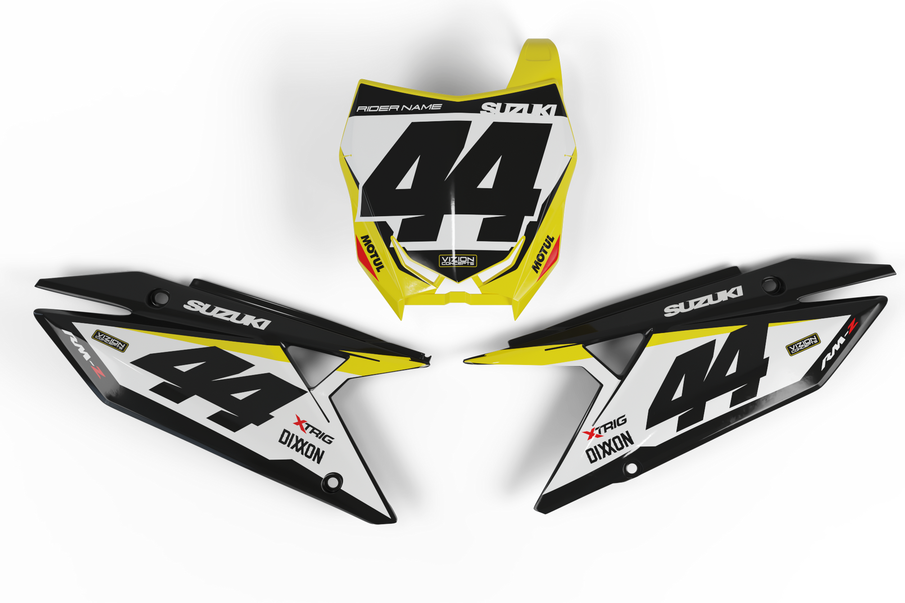 The Raptor Suzuki Number Plate Kit delivers a sharp, race-focused look with strong contrast and bold number clarity. Designed to suit Suzuki RM-Z models, this kit is precision cut and printed on premium materials to withstand the demands of motocross and off-road riding while maintaining a clean, factory-inspired finish.
