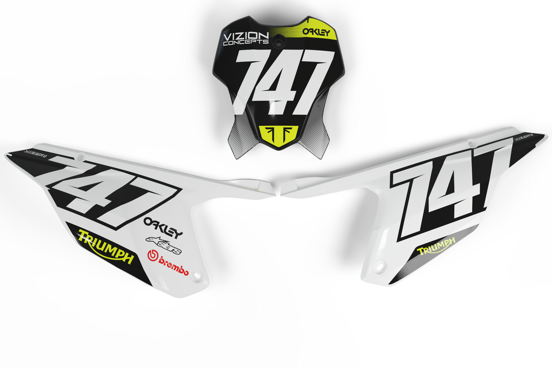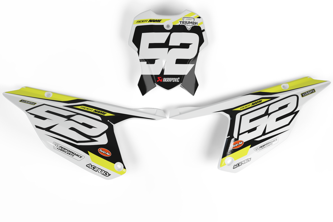 Stand out on the track with our Pre-Designed Number Plate Backgrounds for Triumph MX bikes. Designed for riders who want bold, factory-level styling without the delay of a custom kit, these plates give your Triumph the pro race look straight out of the box.